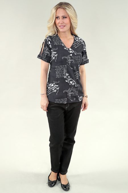 Affirmez votre style avec ce Haut à manches courtes fendues avec encolure en V. Conçu pour la femme moderne, ce haut allie esthétique chic et confort absolu. Confectionnée dans un mélange de 95% rayonne 5% élasthanne de qualité supérieure, elle offre un toucher luxueux et un tombé impeccable. Idéale pour sublimer votre tenue de bureau ou ajouter une touche d’élégance à vos week-ends. Disponible en Noir.