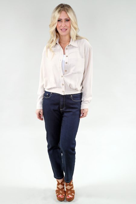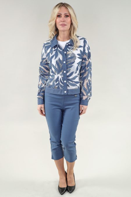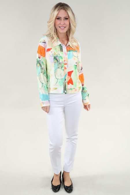 Veste à manches longues en coton et lin avec glissière devant