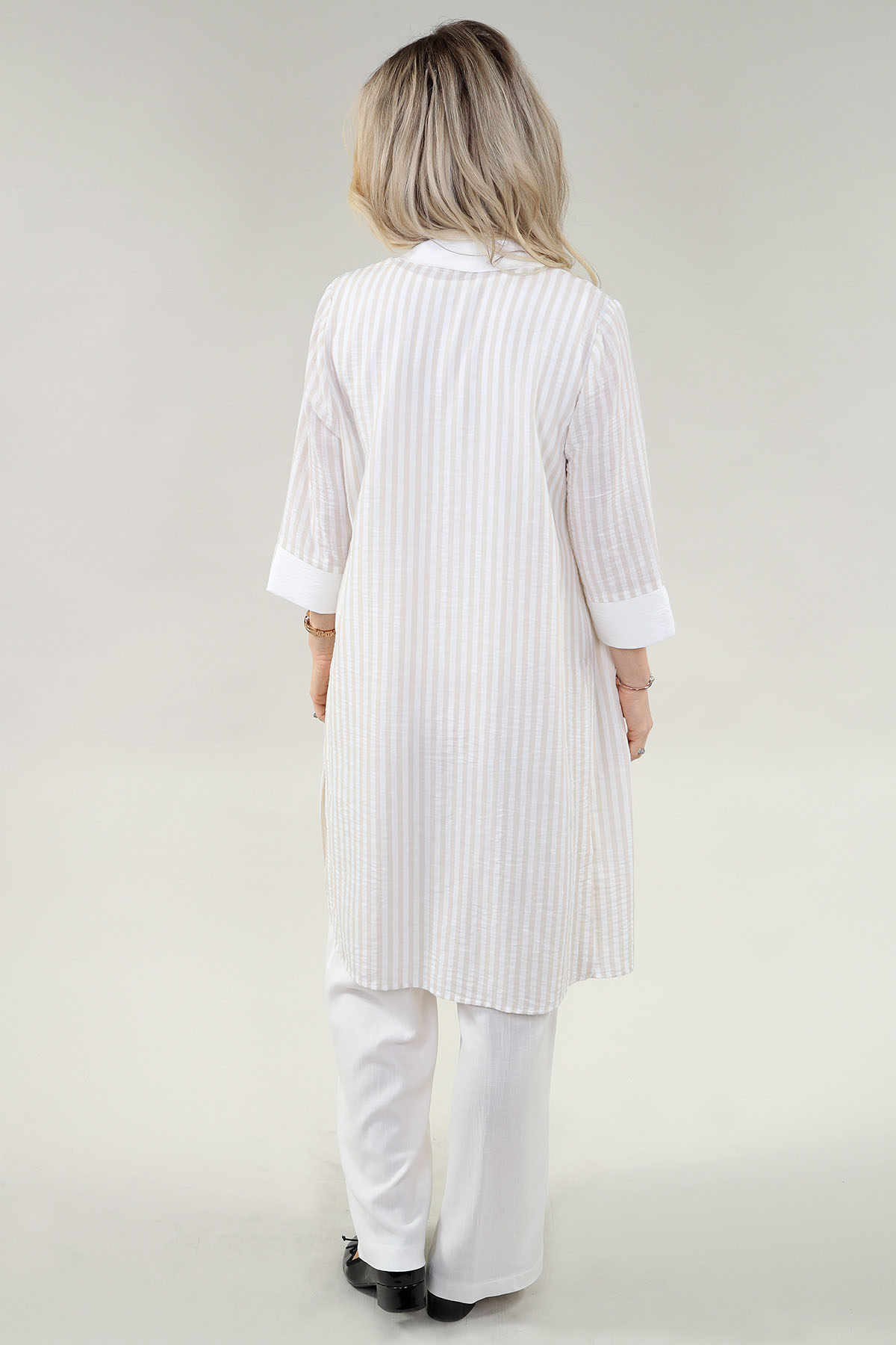 3/4 Sleeve cardigan en A/S camel rayures cardigan lin rayures
