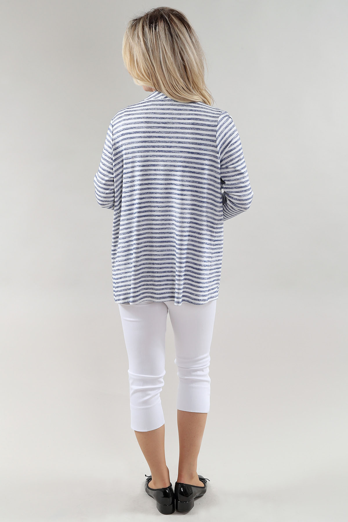 Affirmez votre style avec ce Cardigan à manches longues rayé. Conçu pour la femme moderne, ce cardigan allie esthétique chic et confort absolu. Confectionnée dans un mélange de 95% viscose 5% élasthanne de qualité supérieure, elle offre un toucher luxueux et un tombé impeccable. Idéale pour sublimer votre tenue de bureau ou ajouter une touche d’élégance à vos week-ends. Disponible en rayures blanc bleu.