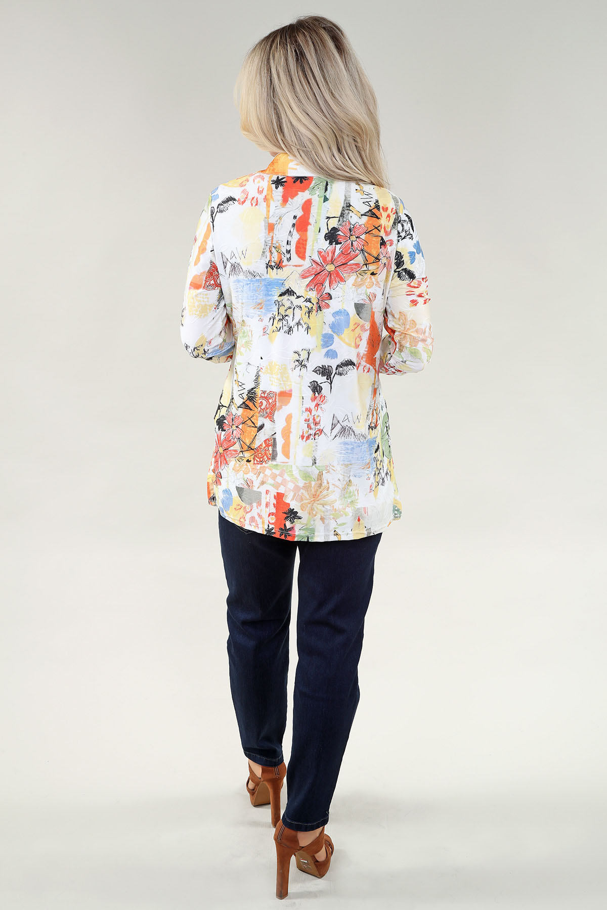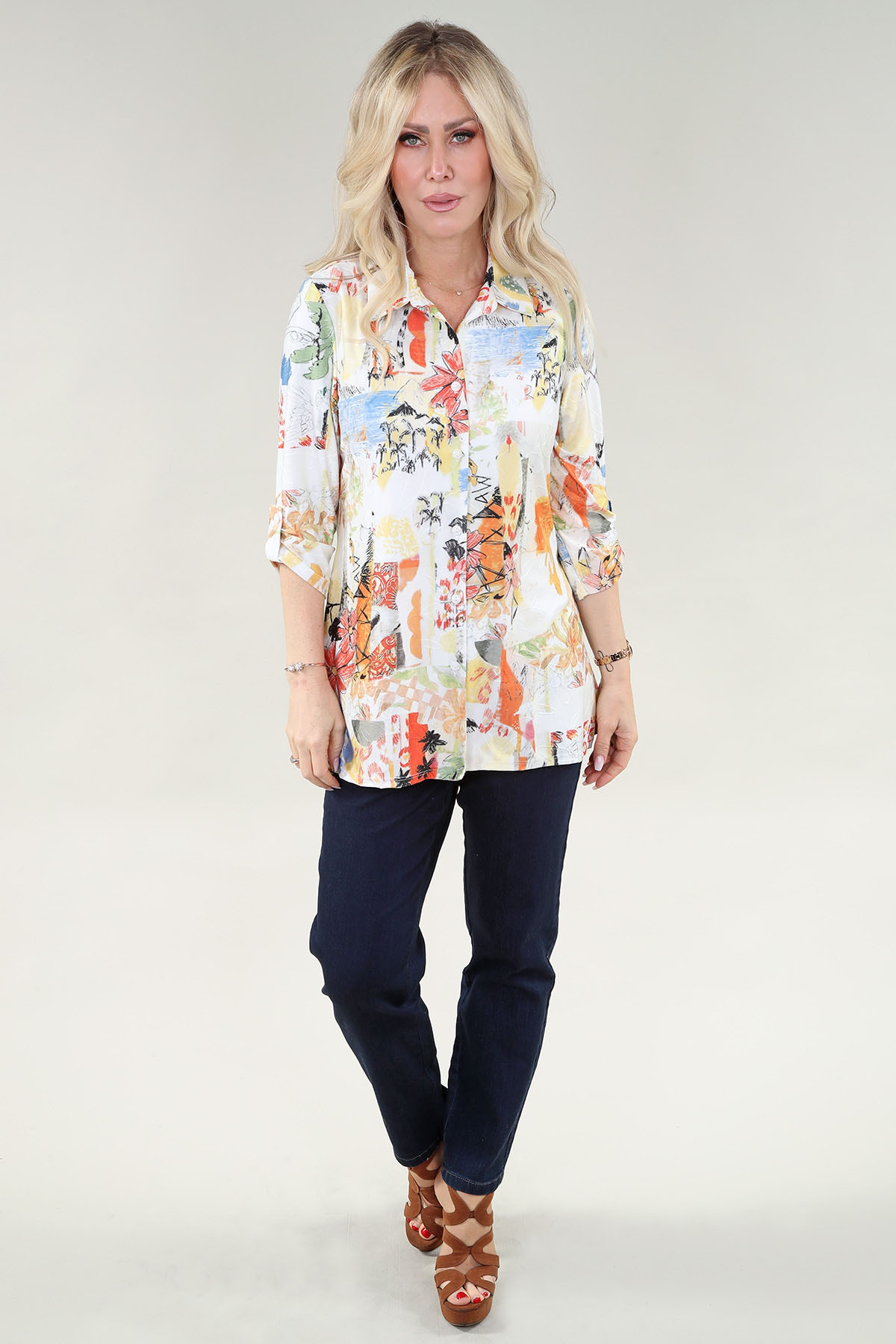 Affirmez votre style avec cette Chemise à manches 3/4 style croquis tropical. Conçu pour la femme moderne, cette pièce allie esthétique chic et confort absolu. Confectionnée dans un mélange de 95% microfibre 5% élasthanne de qualité supérieure, elle offre un toucher luxueux et un tombé impeccable. Idéale pour sublimer votre tenue de bureau ou ajouter une touche d’élégance à vos week-ends. Disponible en imprimé multicolore jaune orange chaud.