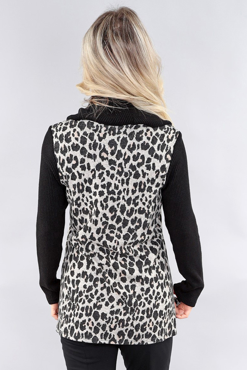 Ls Top – Cowl Neck Front Buttons in Leopard prt – Lightweight ls top – cowl neck front buttons