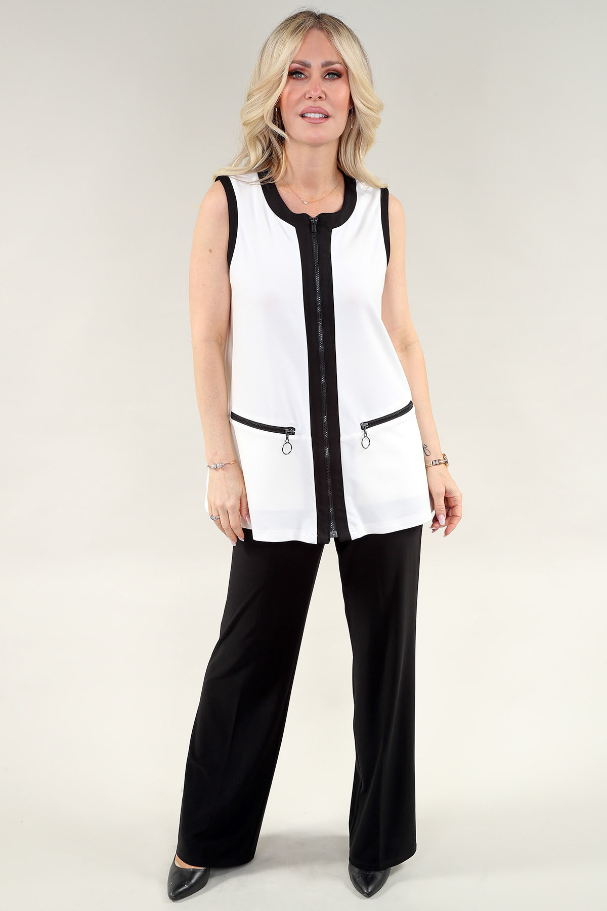 sans manches Vest – Front Zipper W Pkts en A/S ivoire – noir Vest Nan