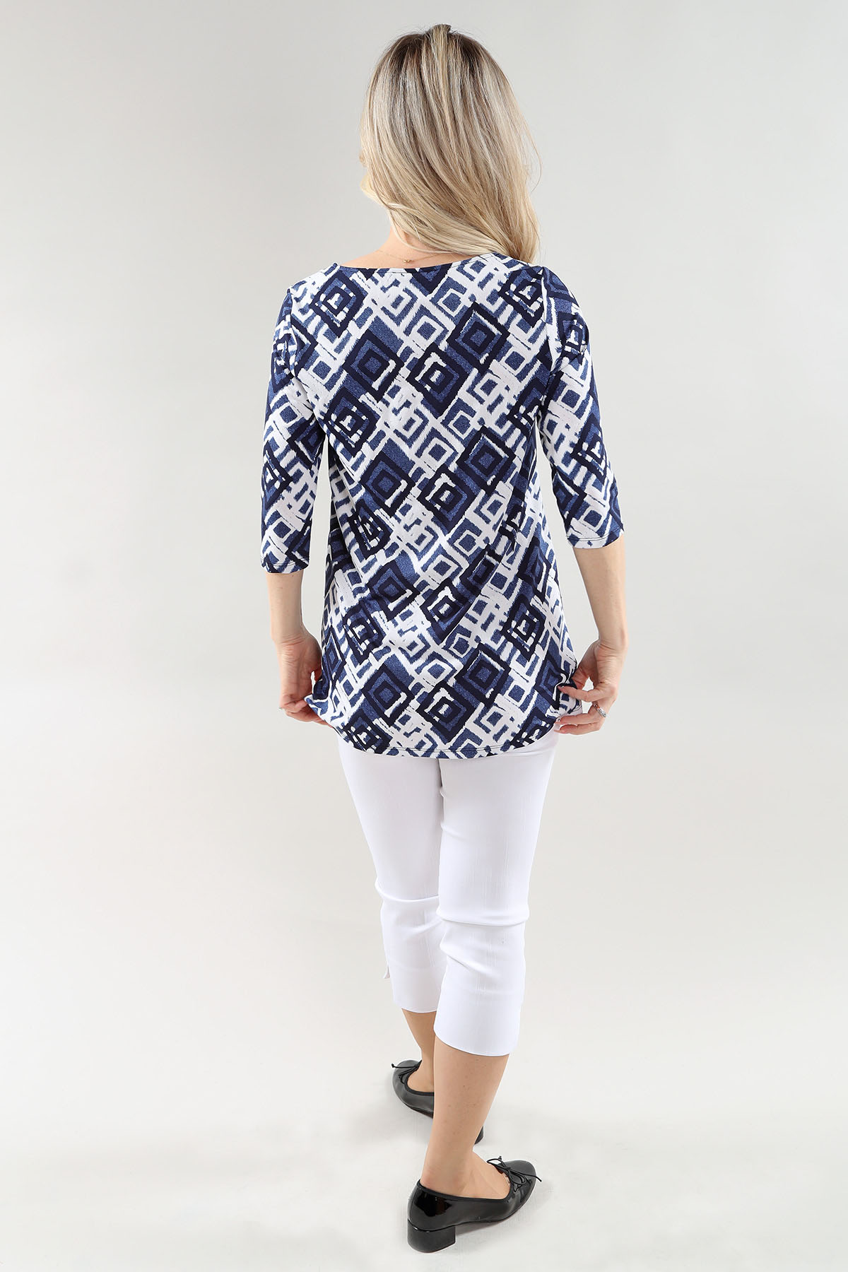 3/4 Sleeve haut – Side fente – Tropical en A/S denim blanc imprimé haut imprimé tricot