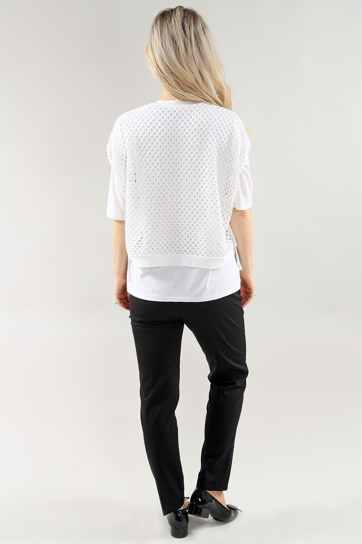 Le modèle Elbow Sleeve haut – Side Ties en A/S ivoire haut résille With Ity apporte une pièce forte pour votre boutique. Tissu: résille with ITY. Composition: 75 % polyester 20 % coton 5 % élasthanne. Couleurs: A/S ivoire. Tailles: XS à XXXL. Catégorie: HAUT. Conçu pour un confort durable et une coupe fiable qui facilite la rotation en magasin.