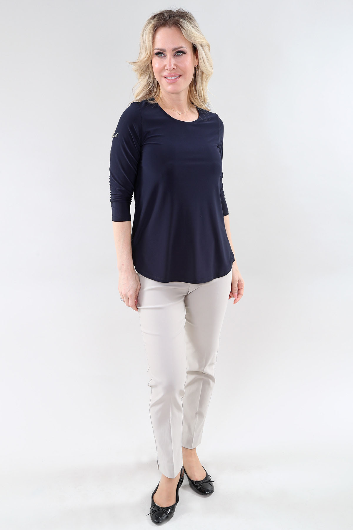 Affirmez votre style avec ce Haut à manches 3/4. Conçu pour la femme moderne, ce haut allie esthétique chic et confort absolu. Confectionnée dans un mélange de 95% polyester 5% elastane de qualité supérieure, elle offre un toucher luxueux et un tombé impeccable. Idéale pour sublimer votre tenue de bureau ou ajouter une touche d’élégance à vos week-ends. Disponible en imprimé marine blanc.