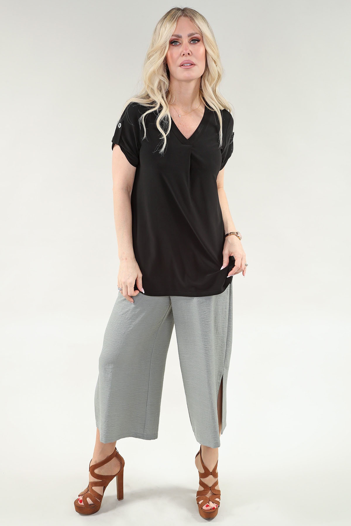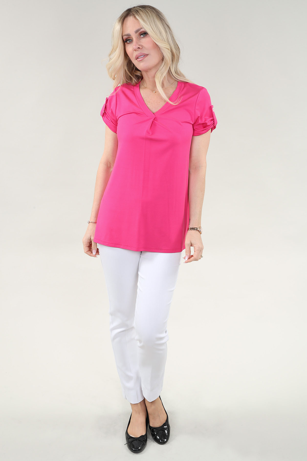 Haut à manches courtes avec pattes et bouton marbré et encolure en V