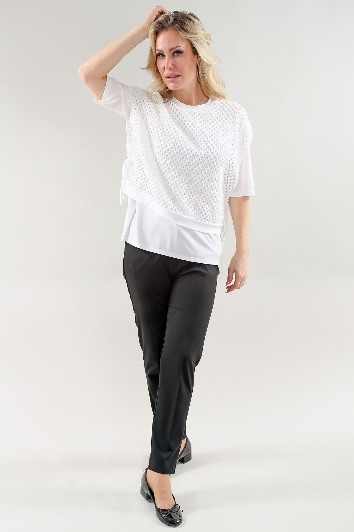 Affirmez votre style avec ce Haut en filet à attaches latérales. Conçu pour la femme moderne, ce haut allie esthétique chic et confort absolu. Confectionnée dans un mélange de 75% polyester 20% coton 5% élasthanne de qualité supérieure, elle offre un toucher luxueux et un tombé impeccable. Idéale pour sublimer votre tenue de bureau ou ajouter une touche d’élégance à vos week-ends. Disponible en ivoire.