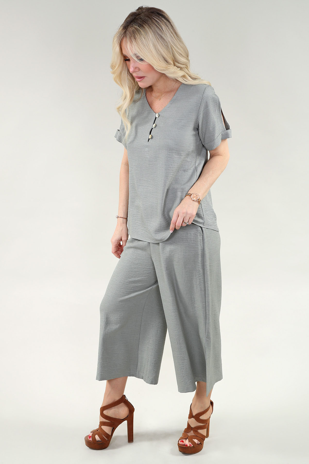 Haut ouvert à manches courtes avec encolure en V et boutons