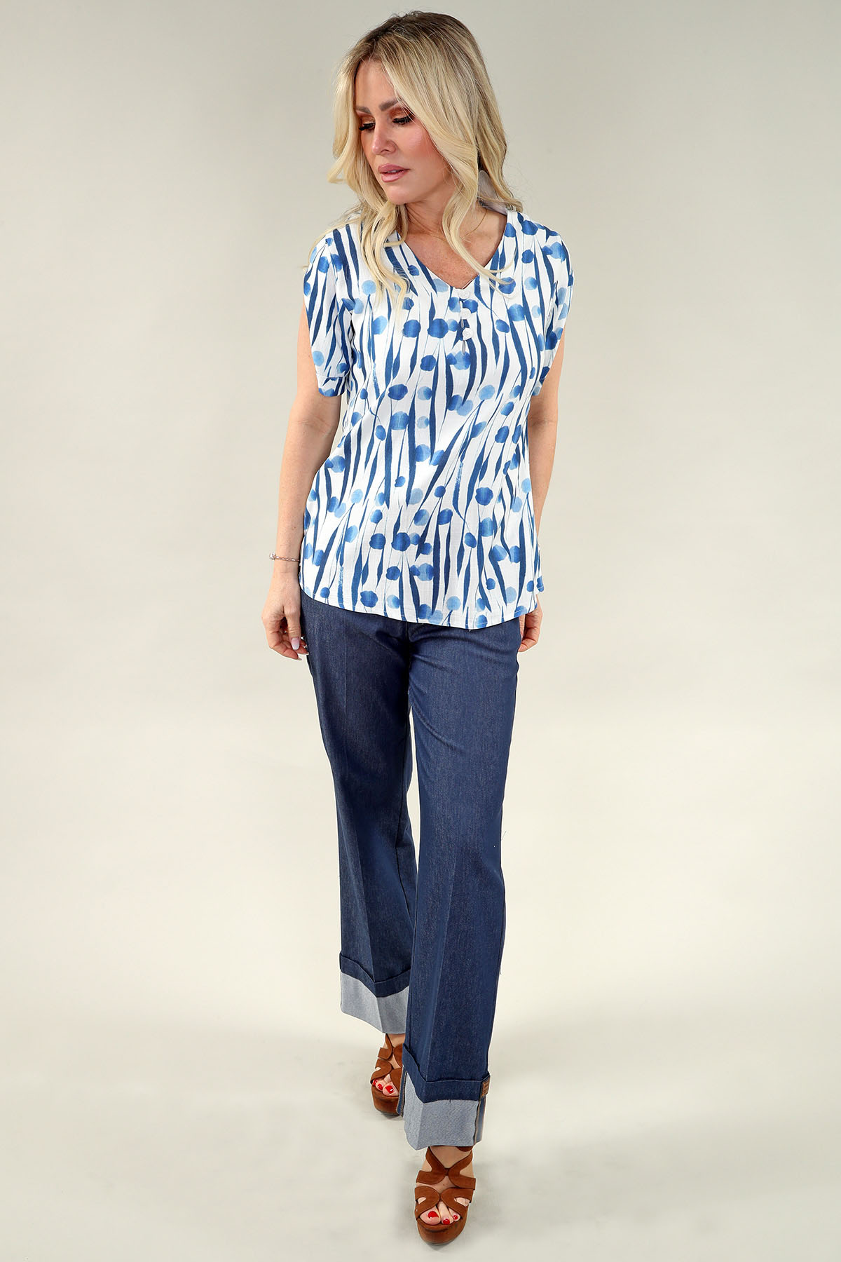 short Split Sleeve haut – col en V en A/S ivoire bleu haut Safari