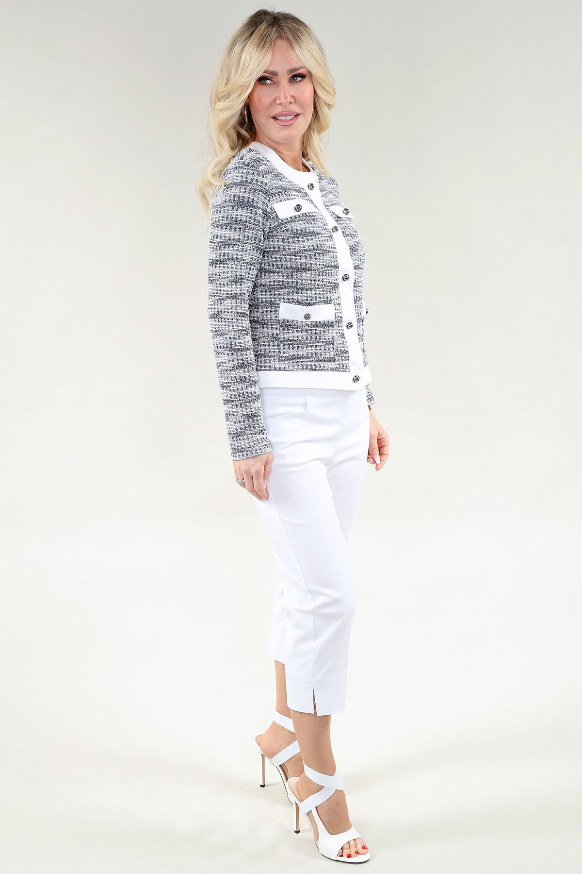 The Ls Jacket- Crew Neck With Pouckets in A/S Blue ivory offers a strong addition for your boutique collection. Crafted from tweed, this jacket is designed for everyday comfort and ease of wear. Made with 88% Microfiber 9% Viscose 3% Spandex, it provides reliable quality and easy care for your customers. A must have for retailers who want Michael Tyler pieces with multiple color options and a trusted jacket fit and consistent sell through.