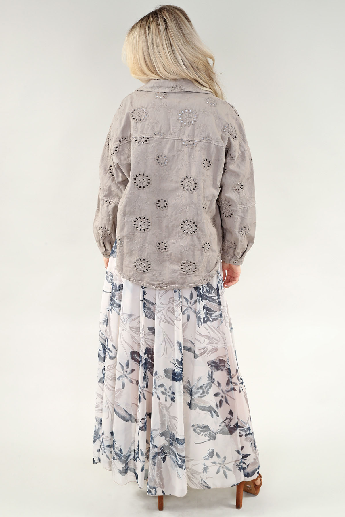Ls Jacket – Cutwork Floral Motifs in A/S Warm taupe Jacket Jeans