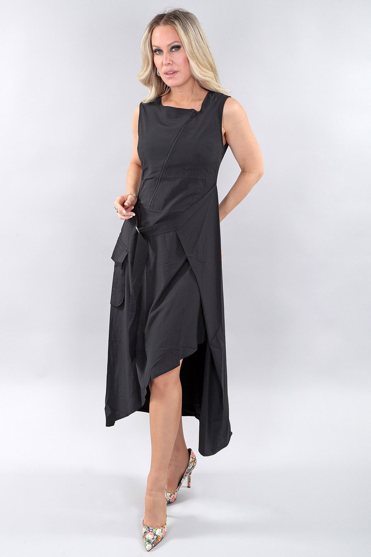 25S3871 – sleevelss long dress-asymetric zipper