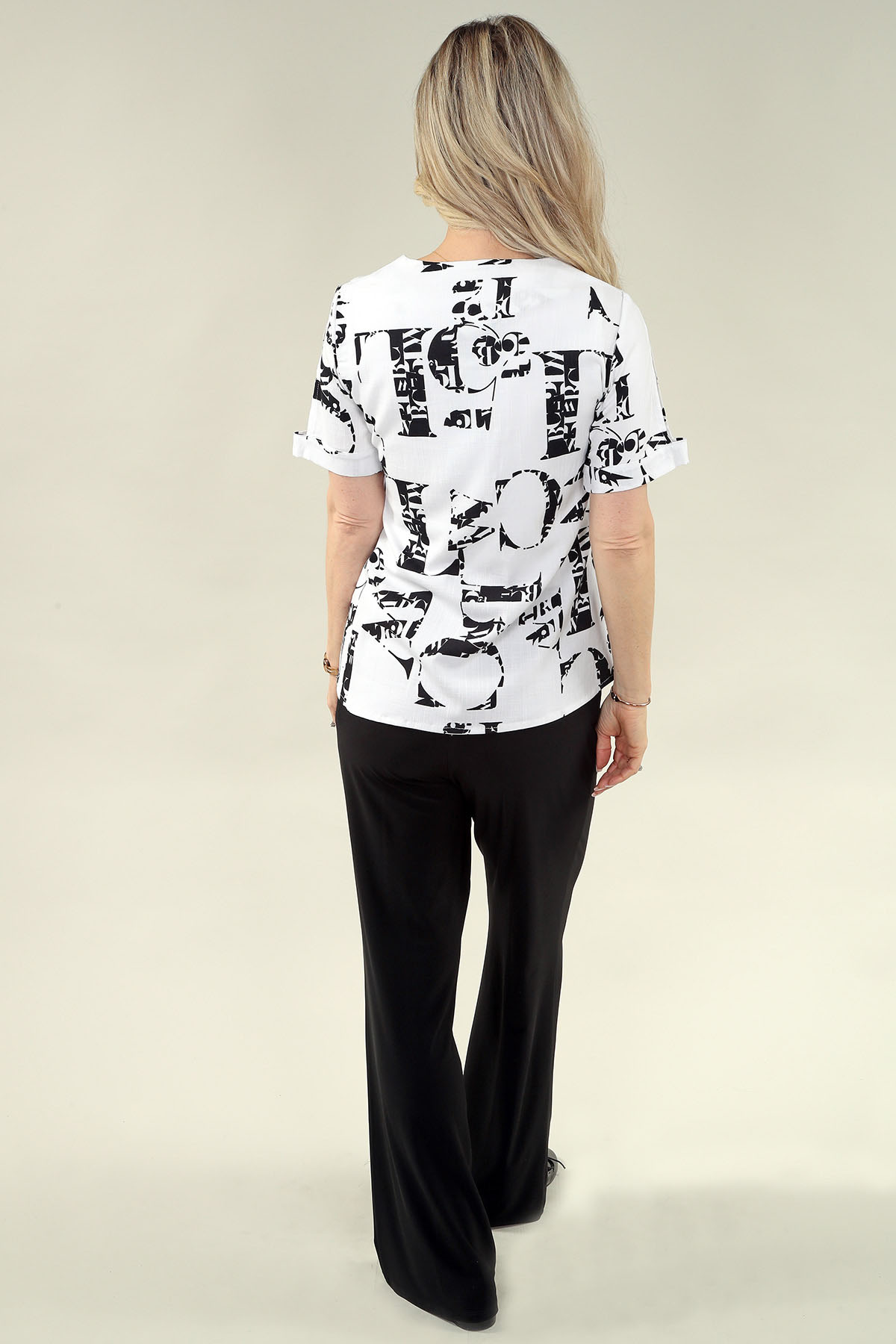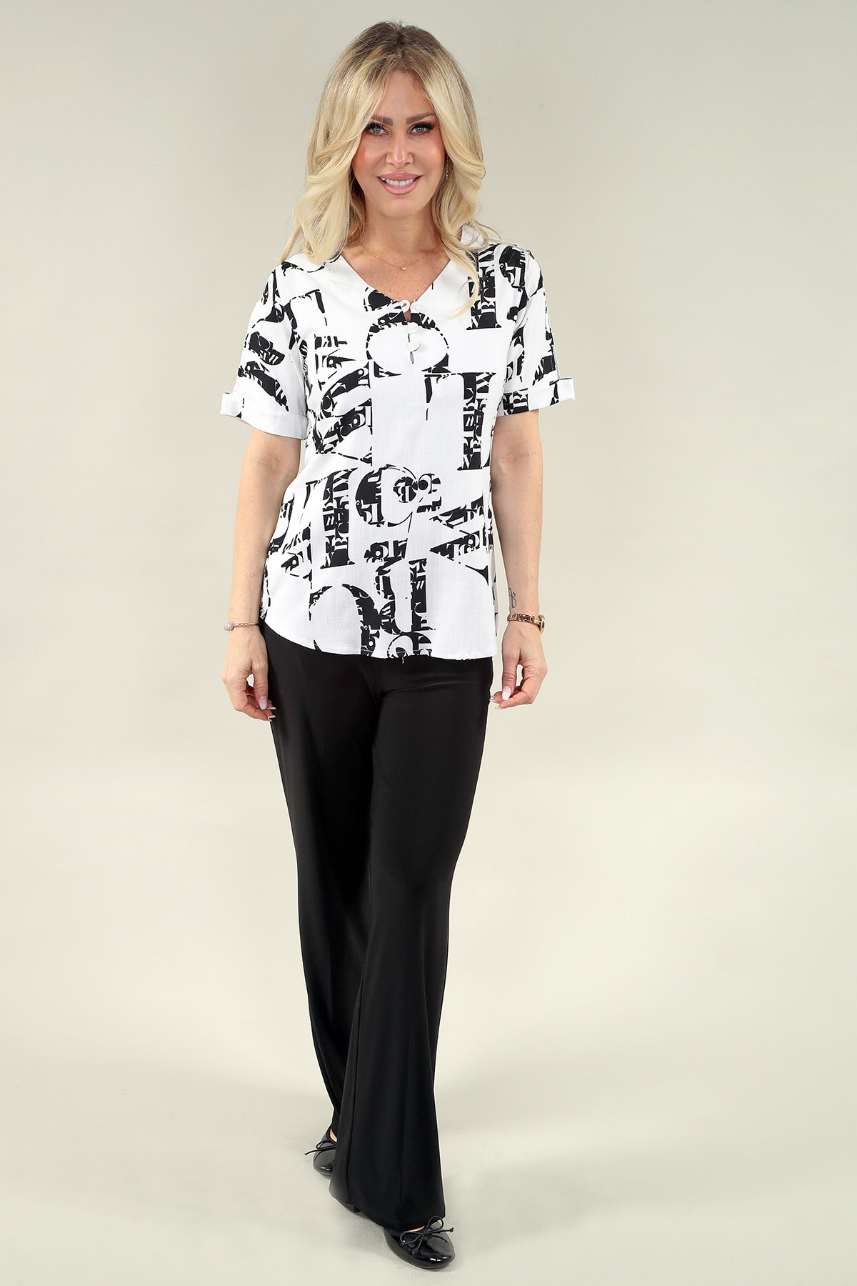 Short Split Sleeve Top- V Neck in A/S White Black Top Safari