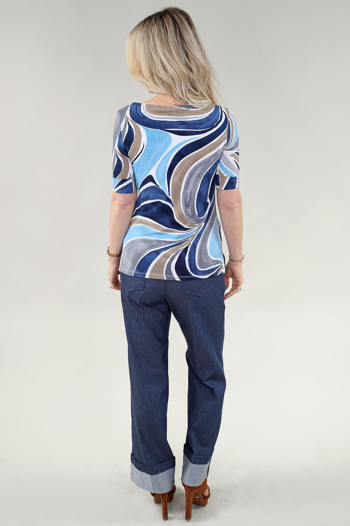 Ss With Cuffs Top-Boat Neck in A/S Blue grey print Top Print Ity