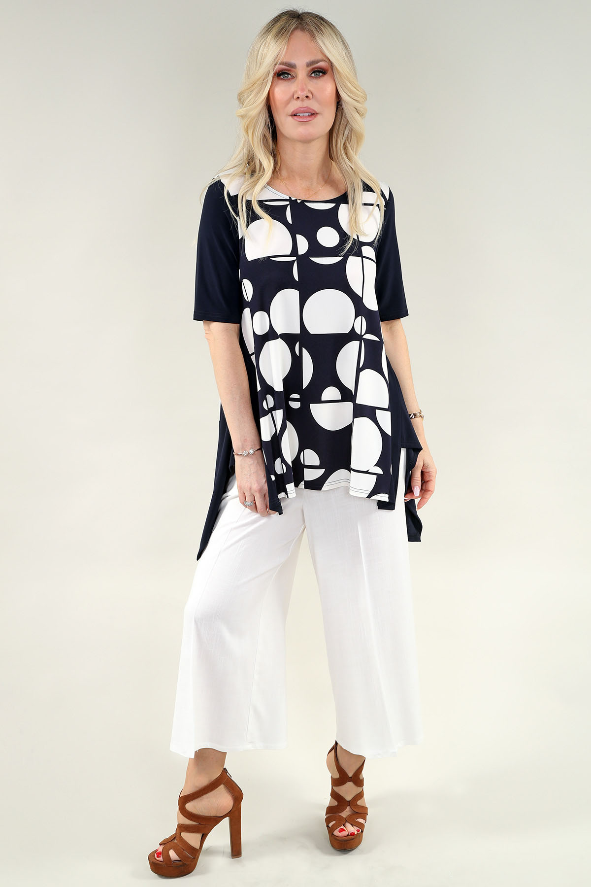 The Ss Flared Top in A/S Navy Ivory offers a strong addition for your boutique collection. Crafted from combo Navy Ity &Printed ITY, this top is designed for everyday comfort and ease of wear. Made with 95% Polyester 5% Spandex, it provides reliable quality and easy care for your customers. A must have for retailers who want Michael Tyler pieces with multiple color options and a trusted top fit and consistent sell through.